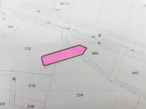●不整形地です。敷地北側は村道、西側・南側は排水路、東側は赤道に面しています。